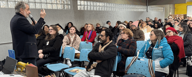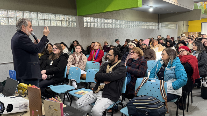 Com o tema “Nas entrevias da ficção: a formação literária na escola”, a atividade na Escola Gomes Carneiro reuniu 135 professores da rede estadual e contou com apresentações de música e poesia realizadas por alunos da escola. Sempre abordando temáticas relacionadas à literatura, as capacitações conduzidas no âmbito do Autor Presente totalizam 80 horas de formação, contemplando 460 educadores das 50 escolas públicas que integram o projeto. “Eu tive o privilégio de participar de todas as formações na minha coordenadoria, e todas foram especiais de uma maneira única. Muitos aprendizados e compartilhamento de saberes, experiências e vivências. Que seja possível multiplicar essa parceria e promover mais encontros como esses”, afirmou Joice Evaldt, ponto focal do projeto na 28ª Coordenadoria Regional de Educação (CRE), de Gravataí.