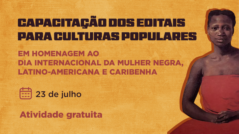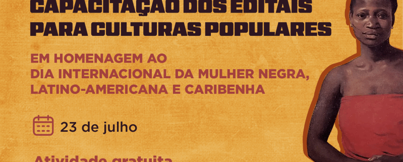 A Secretaria da Cultura do Rio Grande do Sul (Sedac) vai promover uma capacitação sobre editais voltados a culturas populares. Com entrada gratuita, a atividade é direcionada a agentes culturais, produtores, dirigentes de cultura e gestores de organizações da sociedade civil (OSCs). O encontro ocorre no dia 23 de julho, às 14h, no Auditório Luis Cosme da Casa de Cultura Mario Quintana (CCMQ). Para participar, é necessário preencher este formulário. A iniciativa homenageia o Dia Internacional da Mulher Negra Latino-Americana e Caribenha, celebrado em 25 de julho.