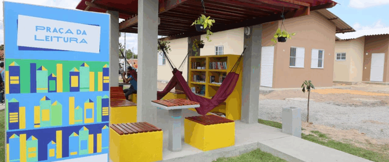 Em Horizonte, a praça da leitura no Residencial João Severo da Silva contará com acervo de 240 livros do Programa Nacional do Livro e do Material Didático (PNLD) doado pelo Fundo Nacional de Desenvolvimento da Educação (FNDE) e pelo Ministério da Educação (MEC) e será compartilhada entre 128 pessoas, que irão ocupar as 32 moradias. O espaço será replicado nas novas construções do MCMV.