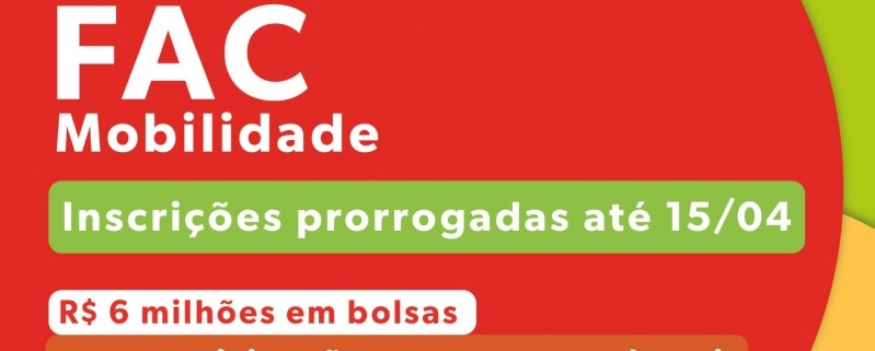 Está publicada no Diário Oficial do Estado (DOE) desta segunda-feira (30/3) uma atualização do Edital Sedac 06/2026 – FAC Mobilidade, da Secretaria da Cultura (Sedac). Além de prorrogar o fim do prazo de inscrições para as 16h59 de 15 de abril, a pasta promoveu retificações nas regras da seleção (mais detalhes abaixo). Por meio de um investimento de R$ 6 milhões do Fundo de Apoio à Cultura (FAC), o certame vai disponibilizar bolsas para a participação de agentes, profissionais e grupos culturais e artísticos gaúchos em eventos ou atividades em outros estados e países, entre o segundo semestre de 2026 e o primeiro semestre de 2027. A íntegra do edital está disponível na página do Pró-Cultura, onde devem ser realizadas as inscrições.