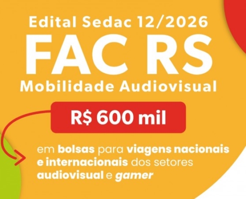 A Secretaria da Cultura (Sedac) lançou o Edital Sedac 12/2026 – FAC RS Mobilidade Audiovisual, publicado no Diário Oficial do Estado de terça-feira (31/3). Com investimento total de R$ 600 mil, o certame vai apoiar a participação de empresas…
